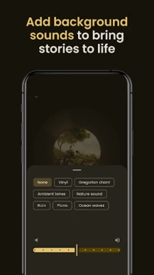 Choose the perfect background sound for a genuinely ambient atmosphere. Whether it's the serene whispers of nature like birdsong, rain, or wind, or the gentle melodies of a piano or violin — breathe life into your narrative.