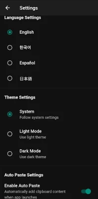 - Auto-Paste Settings: Enable/disable auto-paste functionality