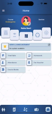 Features • Course/Class Activity o Time Table o Attendance o Homework o Fee Voucher o Assignment o Course Books o Subject Progression o Vacation Work (coming soon) o Online Class • Communication o Circular o Invitation o Meeting Request o Leave Application o Notification o Parent Consent (coming soon) o Complaint o Schedule Meeting o Message • Assessment o Date Sheet o Quiz (coming soon) o Result o Portfolio • School o Academic Calendar o Gallery o Contact Us