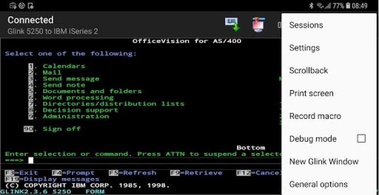 Glink 5250 is used to access applications running on IBM iSeries/AS400 systems. Glink 5250 emulates all IBM 5250 terminals and uses the TN5250 protocol for communication with the host systems.