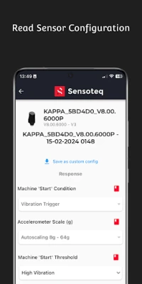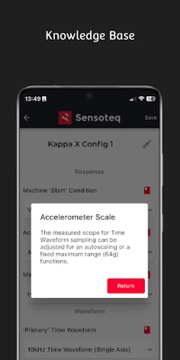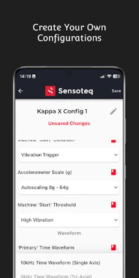 The app provides the steps to configure: • Key sensor sampling and transmission timings. • Trigger mechanisms and their respective thresholds. • Time Waveform functionality.