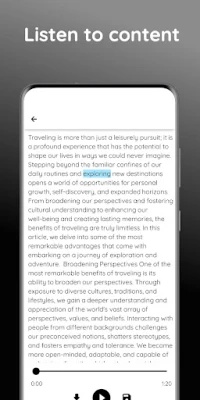VIIO allows you to listen to any written content. Features you'll find on the app includes text-to-speech, pdf-to-speech, web content to speech and image to speech by scanning documents. It uses a narrator’s voice to dictate the content that it’s been given to read aloud.